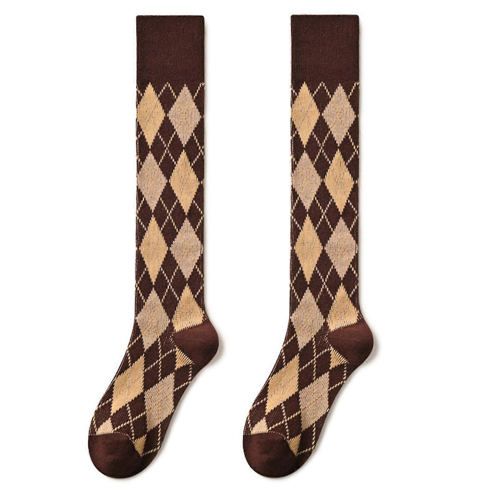 Women Ribbed Knee High Socks Japanese Preppy Style Vintage Colorful Argyle Diamond Plaid Pattern High Tube Stockings