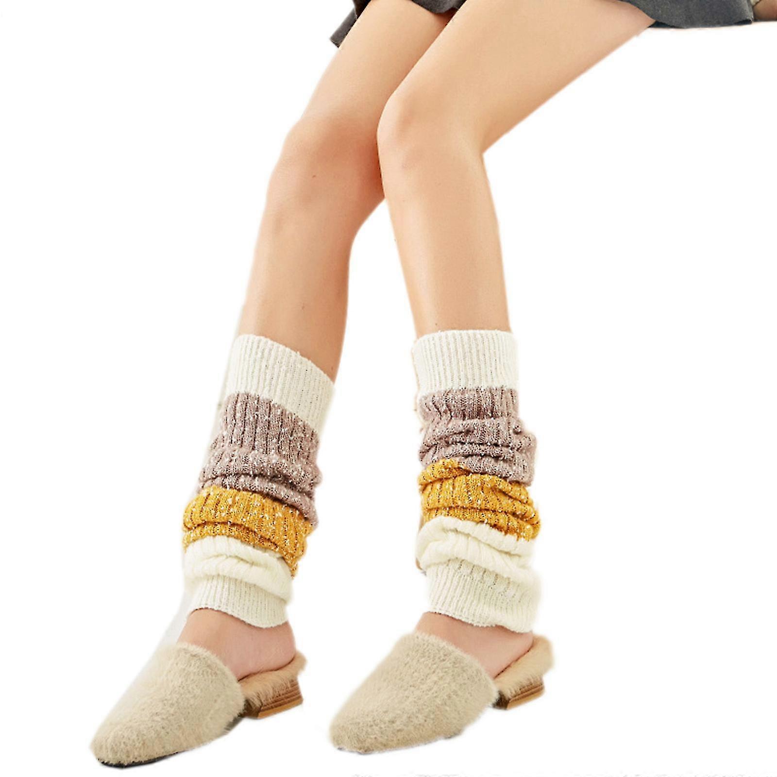 Women Chunky Ribbed Knit Long Leg Warmers Colorblock Small Dots Thickened Boot Cover Socks Dance Over Knee Stockings