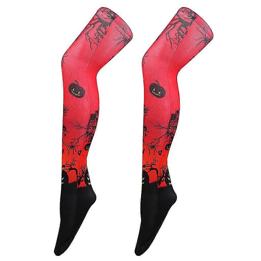 Women Halloween Spider Bat Haunted House Printed Thigh High Long Socks Stockings