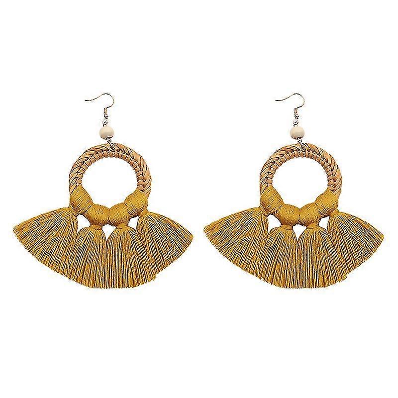 Ethnic Style Cotton Thread Tassel Earrings European And American Exaggerated Earrings Fashion Long Earrings Handmade Rattan Ladies Jewelry