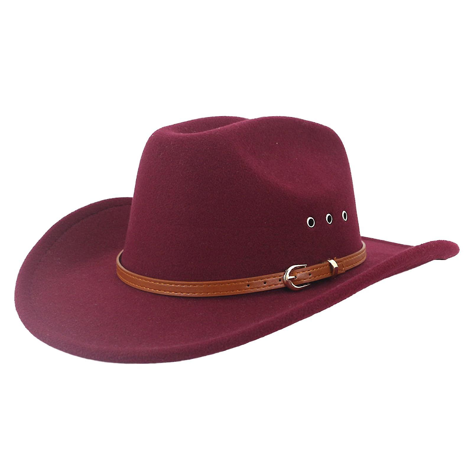 Ethnic Style Wide Brim Hemming Faux Leather Belt Decor Jazz Hat Western Cowboy Cowgirl Fedora Hat Fashion Accessories