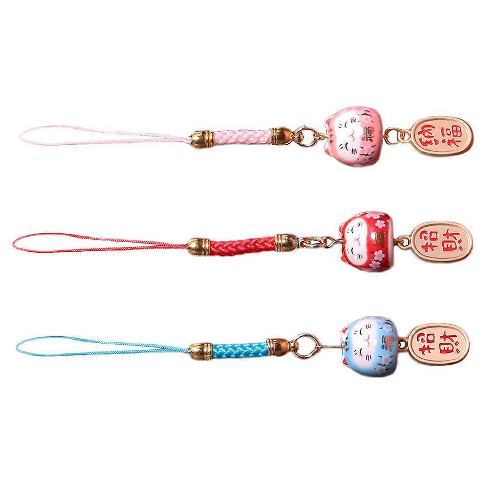 Traditional Japanese Style Fortunate Cat Pendant Phone Lanyard Men Phone Charm 3Pcs