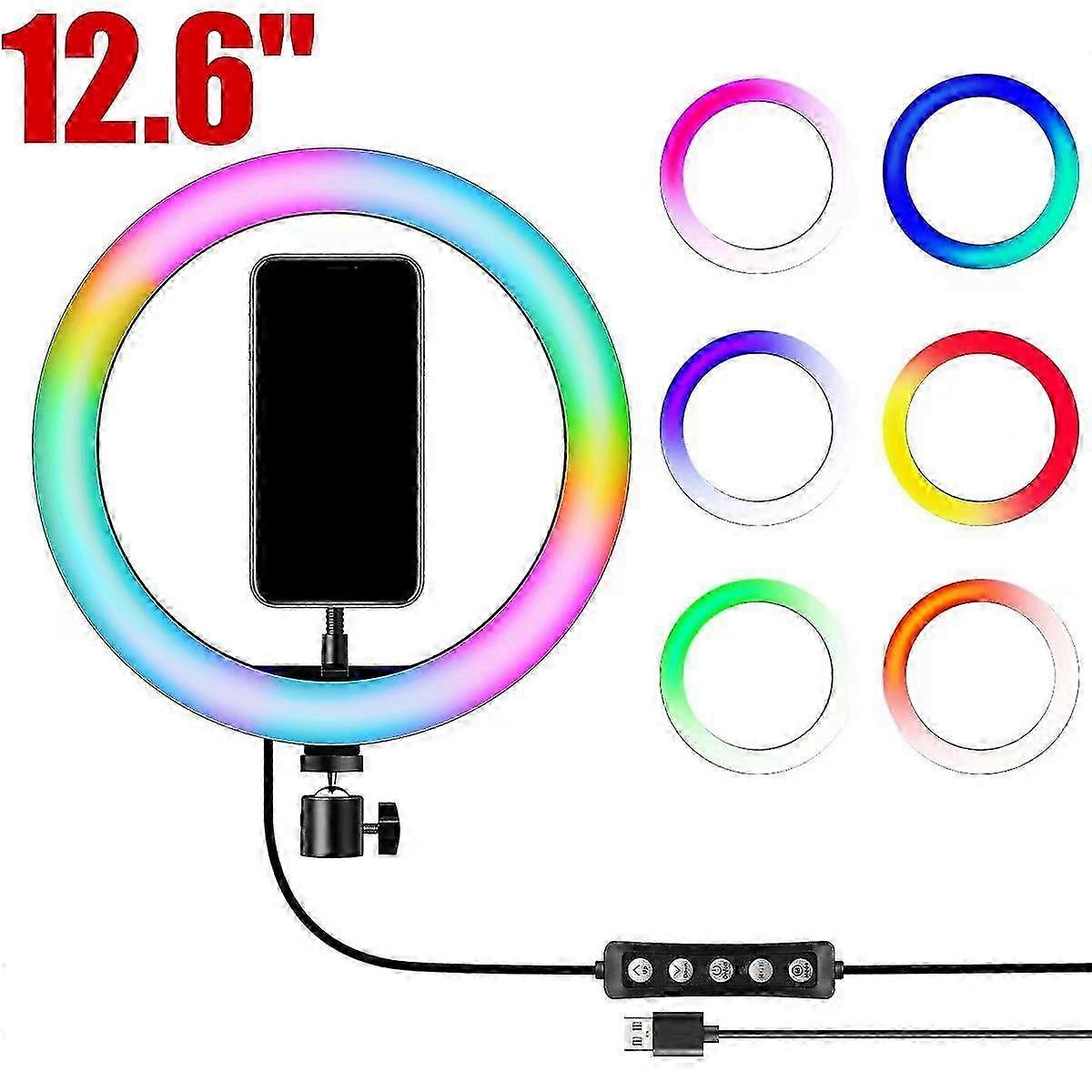 Size: 12.6 inches Light source power: 8-13W Voltage: 5V Functions: foldable, retractable, multi gear adjustment, three color temperature Color temperature: 2700K-6500K Light source power: 8W-13W Source category: spot Dimmable or not: Yes Adjustable brightness: Yes Main scope of application: live broadcast, light supplement and beauty Light source type: 2835 lamp beads/050IC Adjustable color: Yes Brightness gear: 10 RGB modes: 49