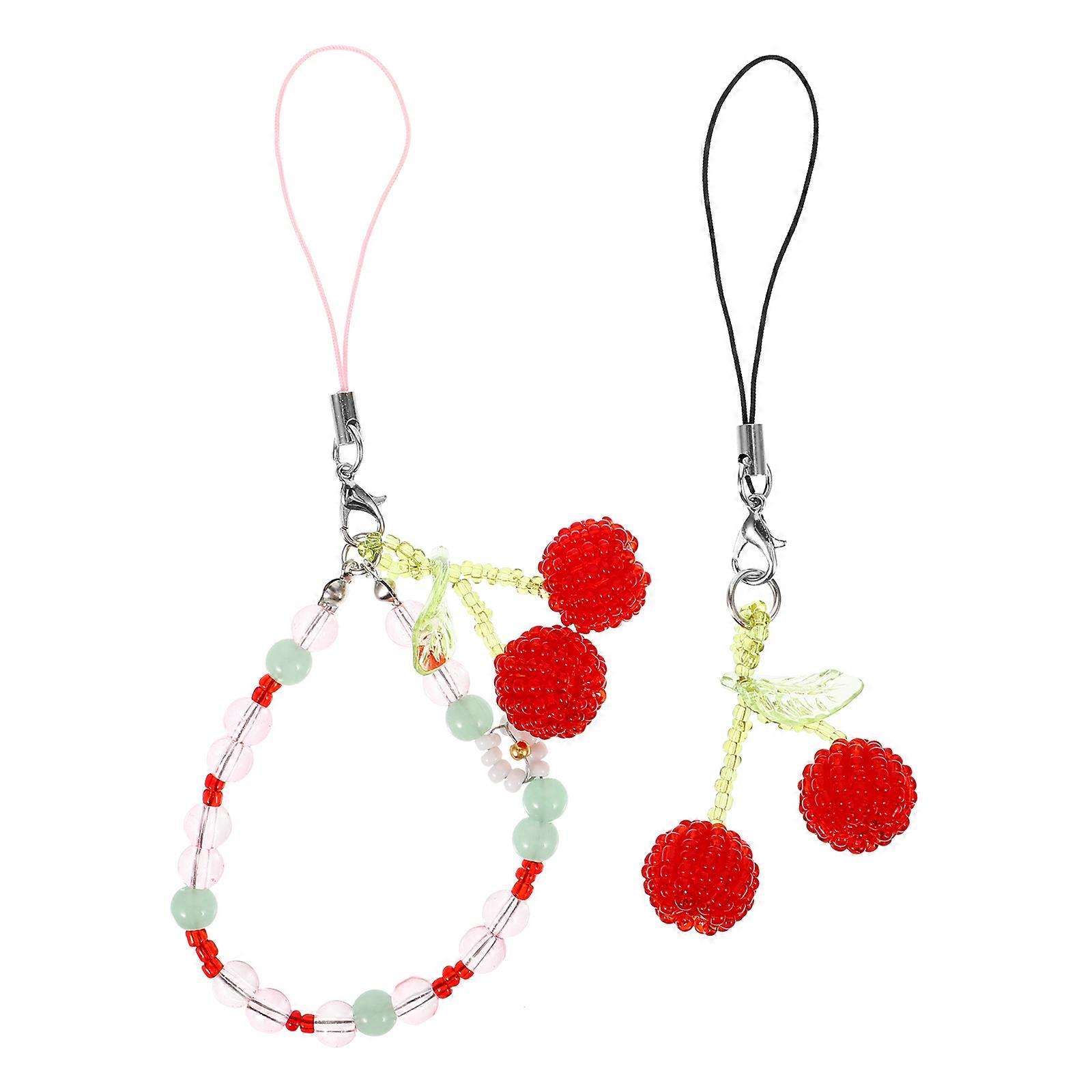 Mobile Phone Beaded Lanyard Stereoscopic Design Phone Accessories 2Pcs