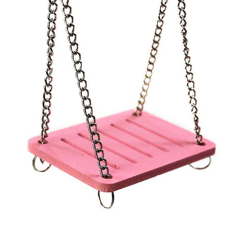 Hamster Toys Swing Hanging Gadget Wooden Cage Accessories Supplies Amuse Mouse Pink