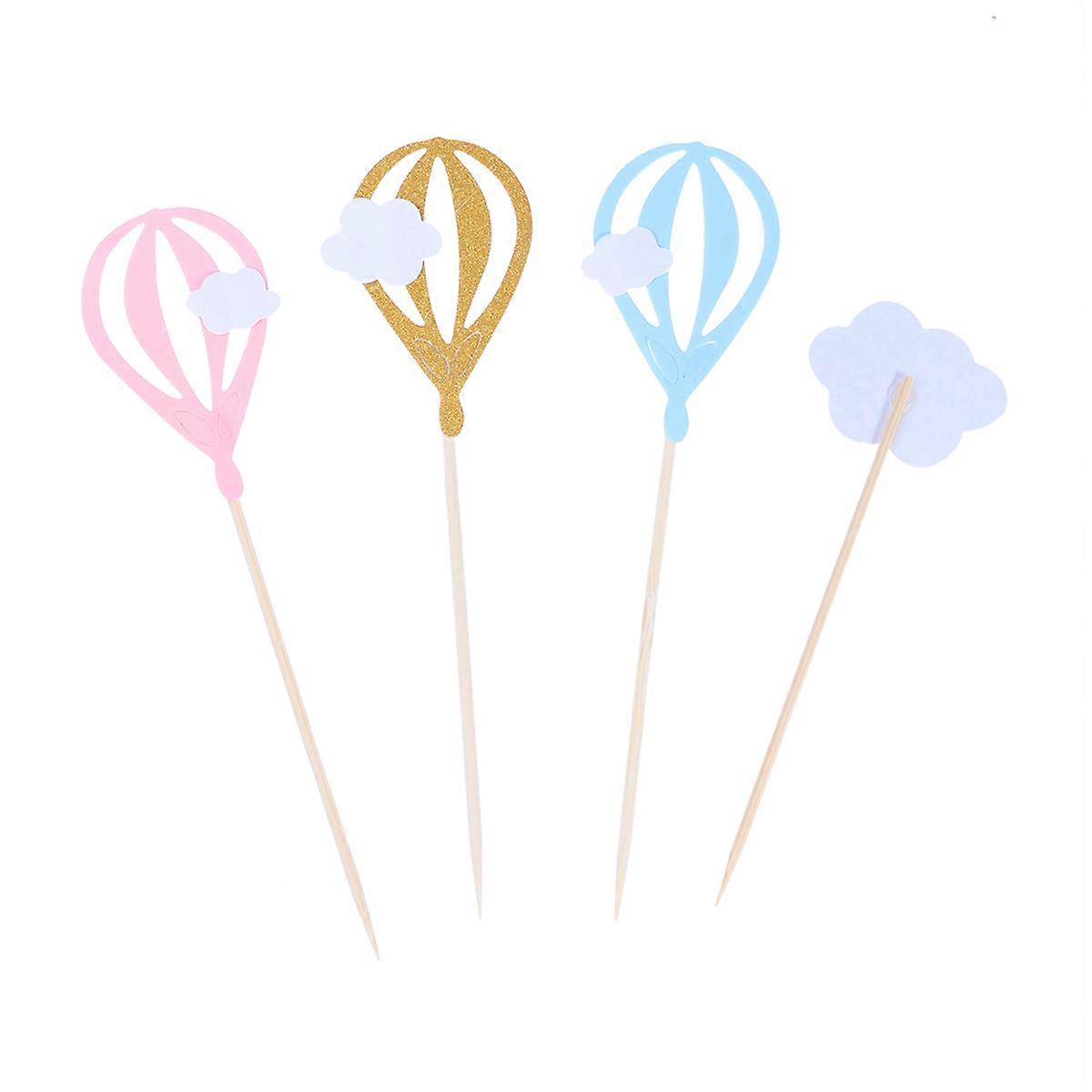 Hot Air Balloon Cupcake Toppers White Baby Shower Birthday Party Supplies 17.00x4.50x0.20cm Paper Food Picks 20Pcs