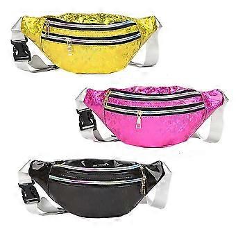 Holographic Shiny Waist Bag Adjustable Belt Waterproof Pu Waist Pack For Traveling Running Partying