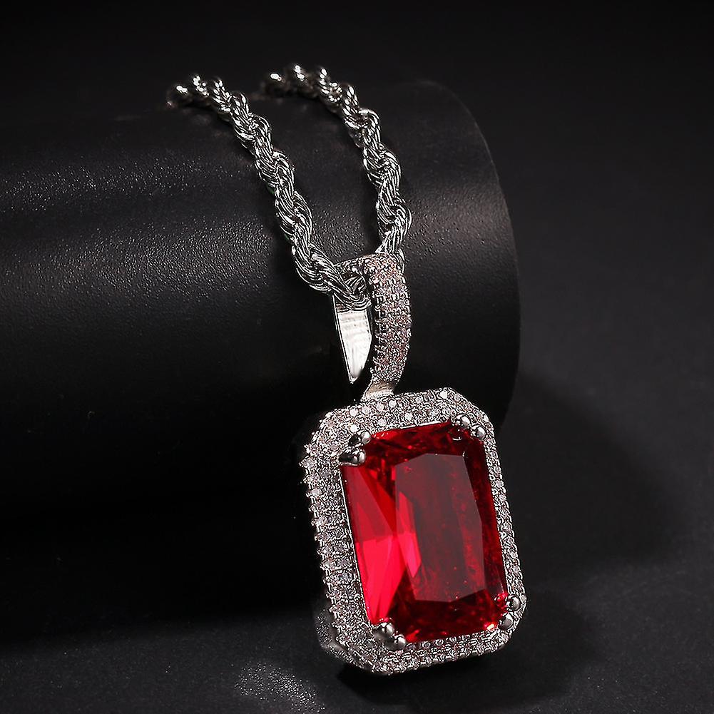 Hip Hop Mocha Fluorescent Square Solid Stone Pendant Necklace Unisex Gift/couple Gift