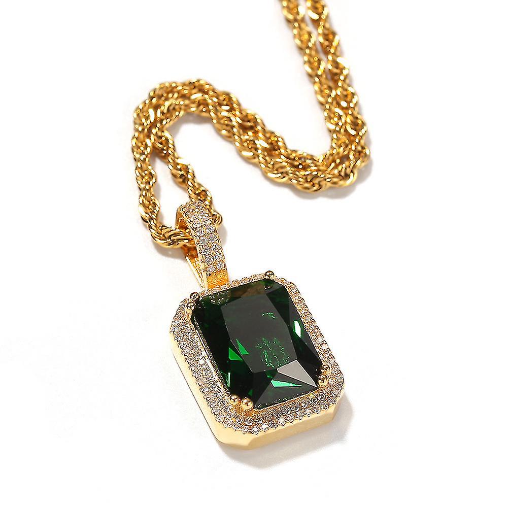 Hip Hop Mocha Fluorescent Square Solid Stone Pendant Necklace Unisex Gift/couple Gift