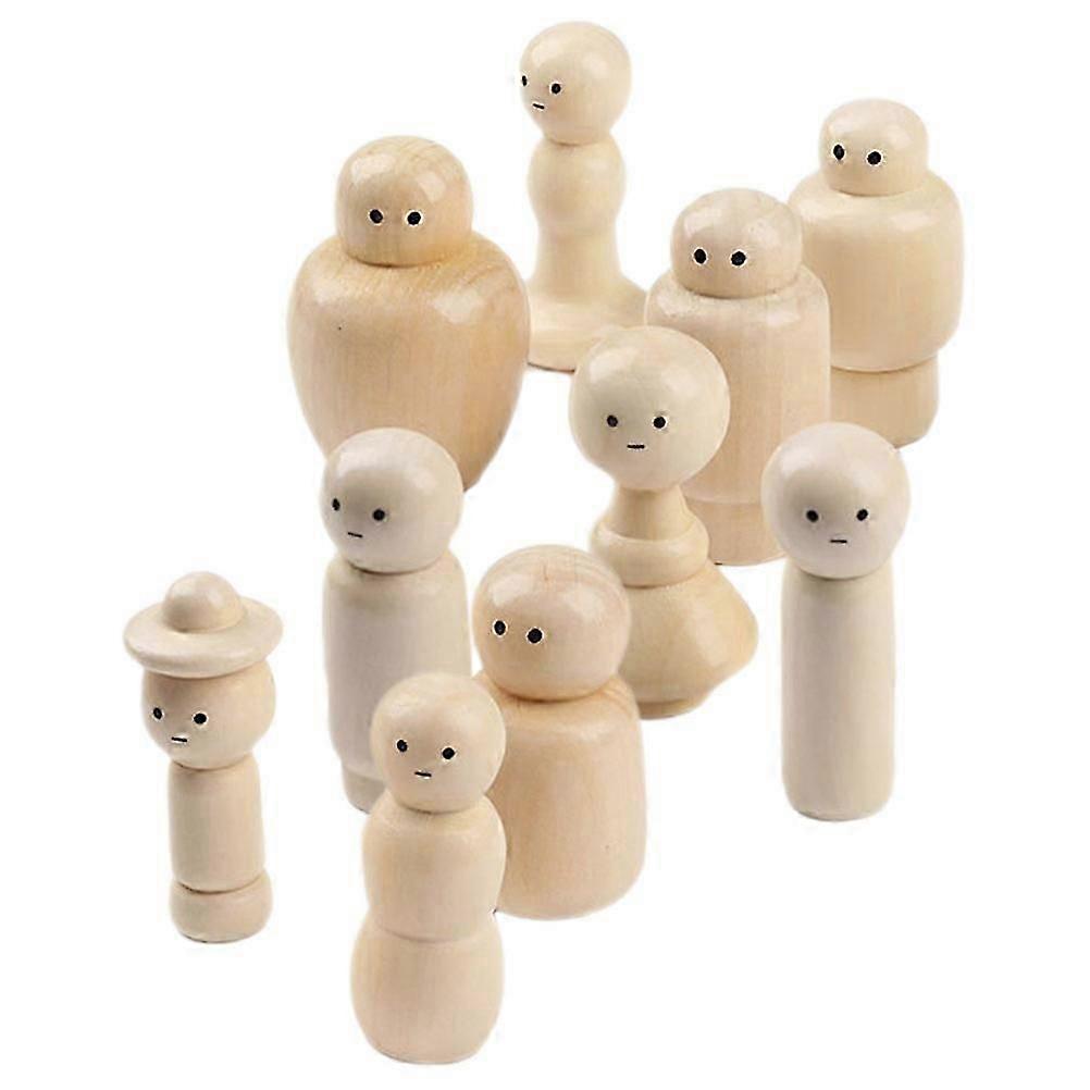 Peg People Unfinished Wooden Peg Dolls Simple Shape Diy Craft Art Projects 10Set