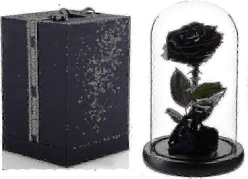 preserved real rose in glass dome gift for thanksgiving christmas valentine's day birthday mother's day (black)