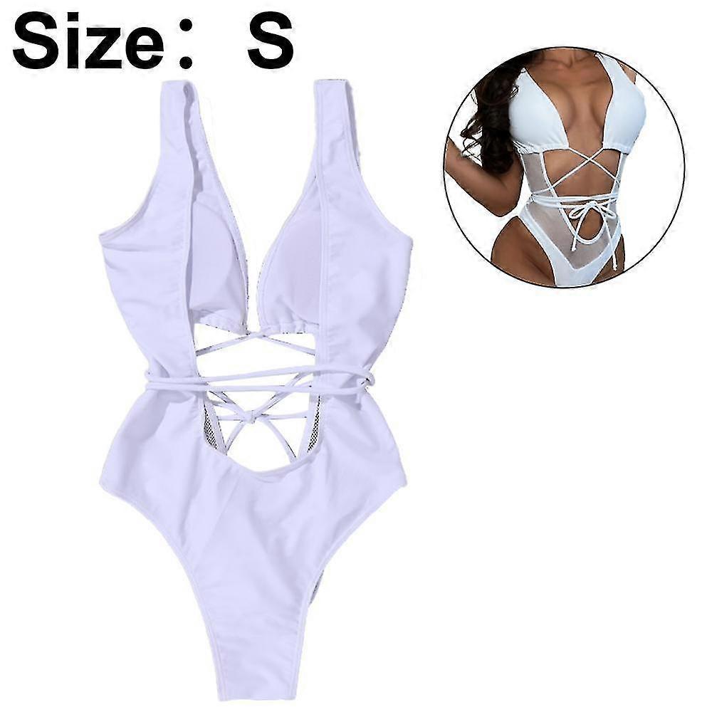 Pink Women's Sexy One Piece Swimsuit Backless Bathing Suit Lace Up Bikini