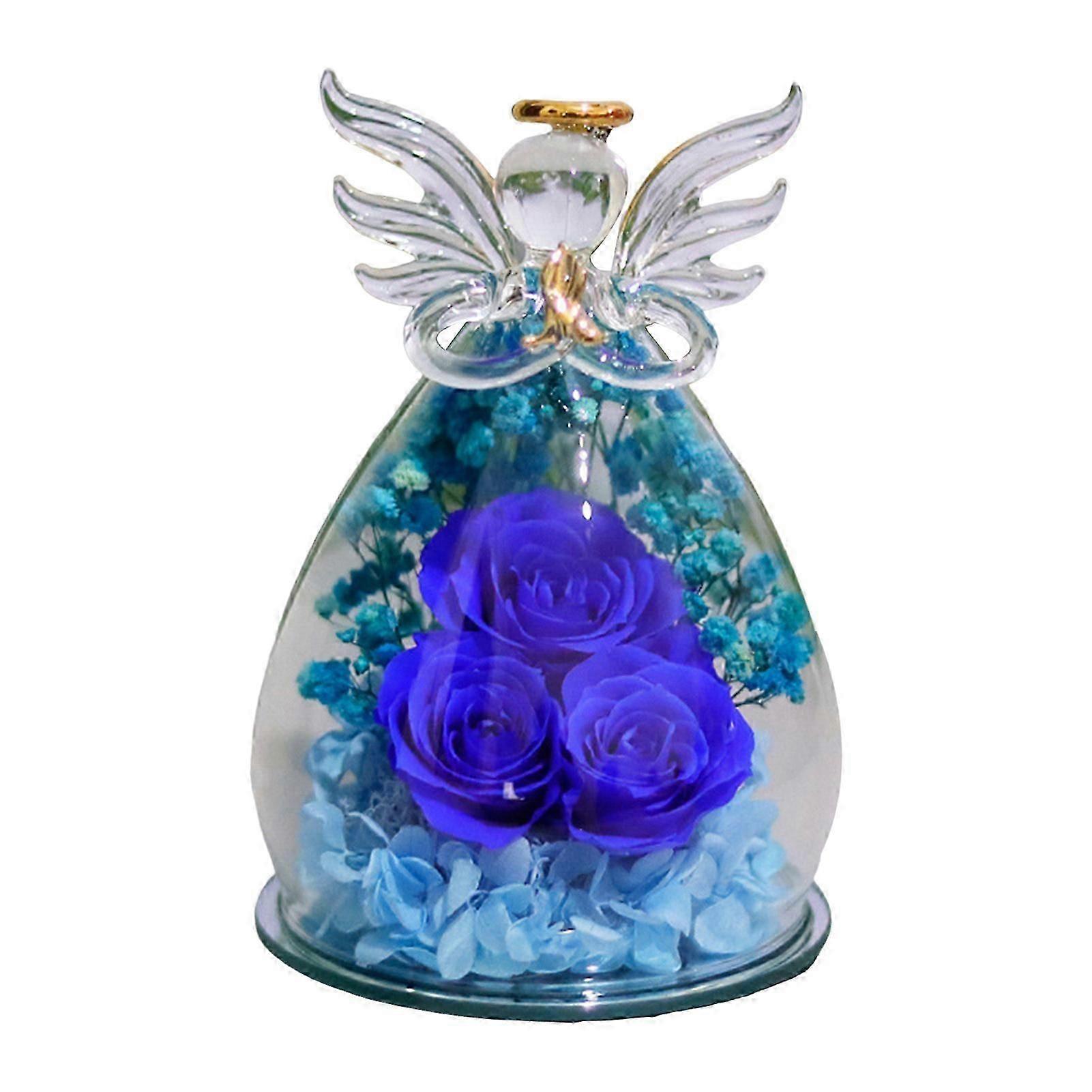 Eternal Roses in Angel Glass Cover Tabletop Preserved Flowers Angel Preserved Roses Christmas Gifts for Mom Grandma Wife