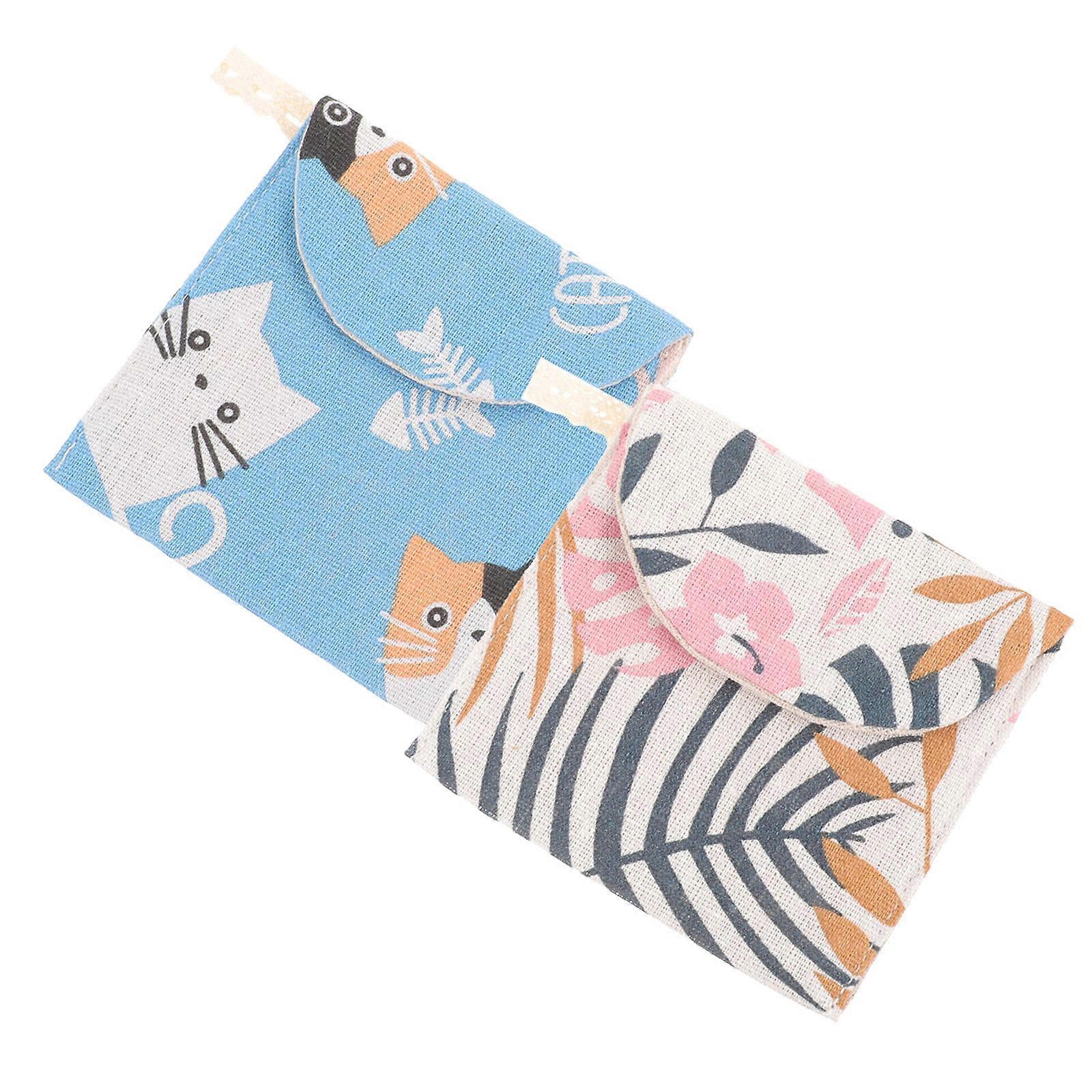 Sanitary Pad Storage Pouch Girls Portable Outdoor Use Cotton Linen Material Insect-Proof 2Pcs