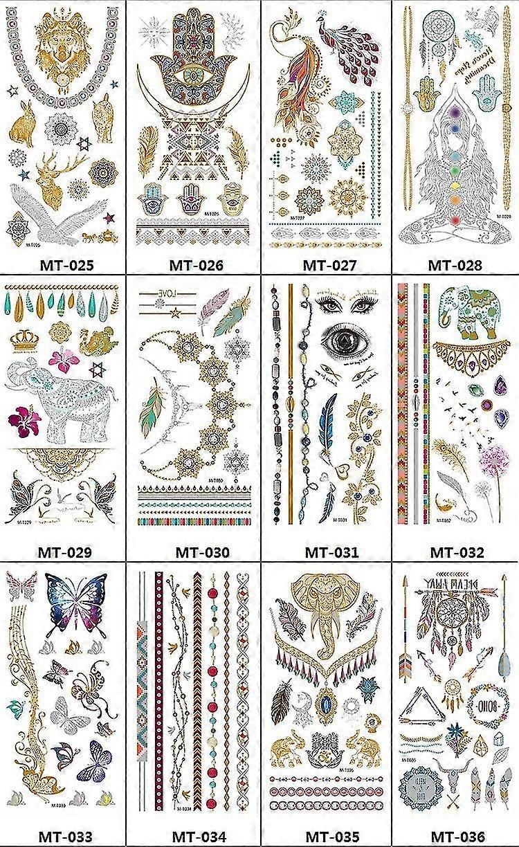Metallic Temporary Tattoos Temporary Tattoos Glitter Shimmer Designs (12pcs)