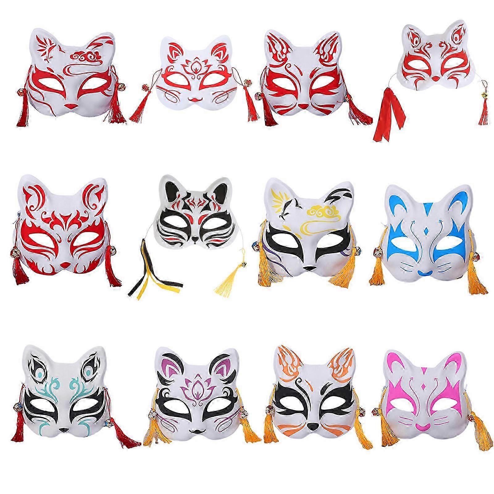 Japanese Anime Half Face Masquerade Foxes Festival Masks Halloween Party Rave Cosplay Props for Adult Mens Womens powder