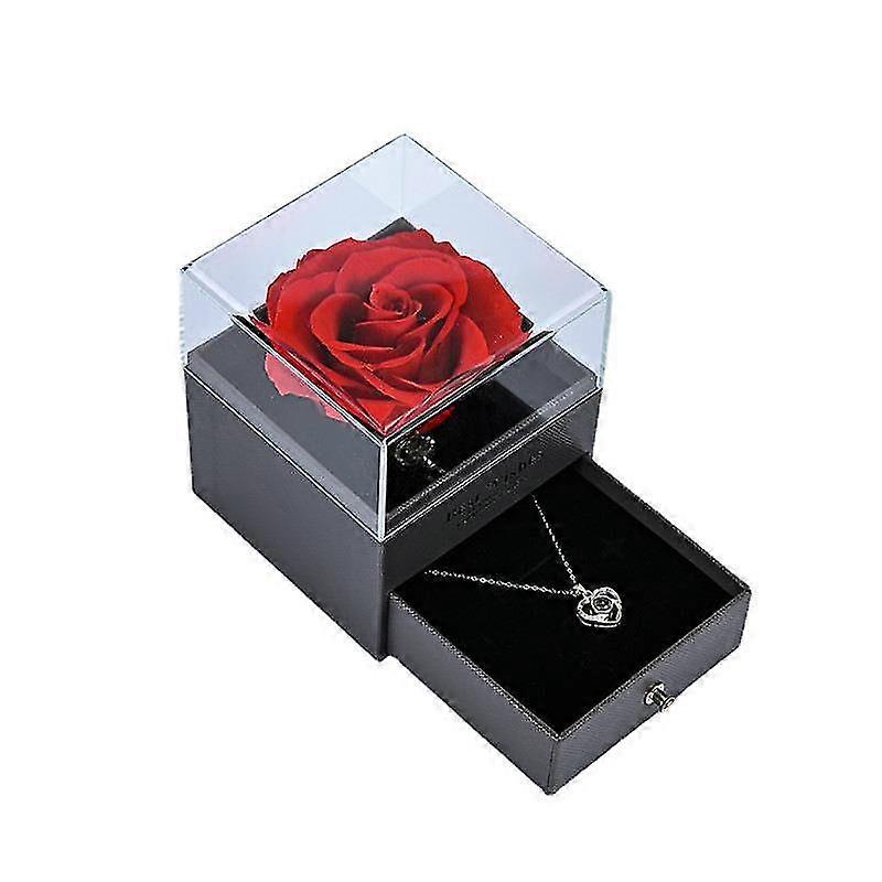 Handmade Preserved Rose Gift Box With Forever Rose And Love You Necklace, Enchanted Flower Gift For Girlfriend Mother Wife