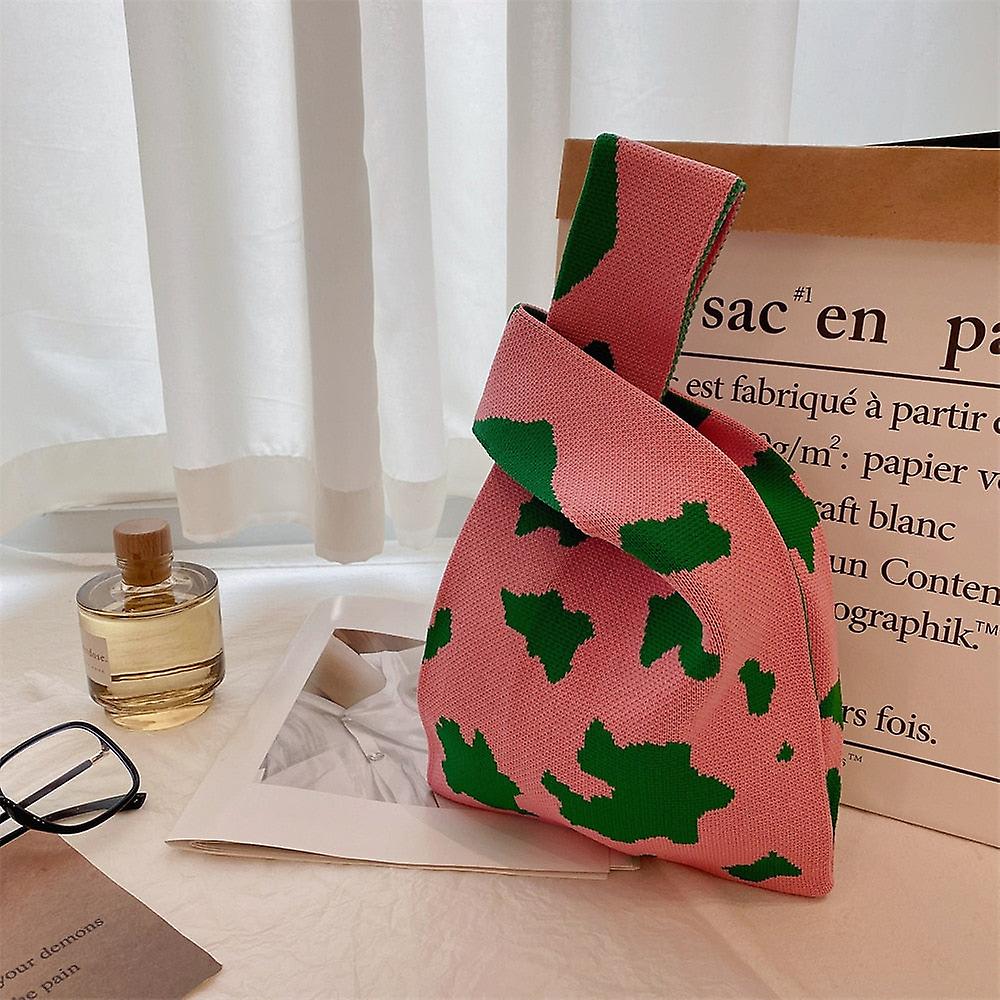 Handmade Knit Handbag Women Mini Knot Wrist Bag Japanese Casual Color Wide Stripe Plaid Tote Bag Student Reusable Shopping Bags