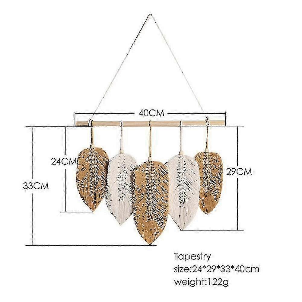 Handmade Macrame Leaf Wall Hanging Tapestry Cotton Feathers Woven Leaves Door Porch Decoration