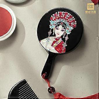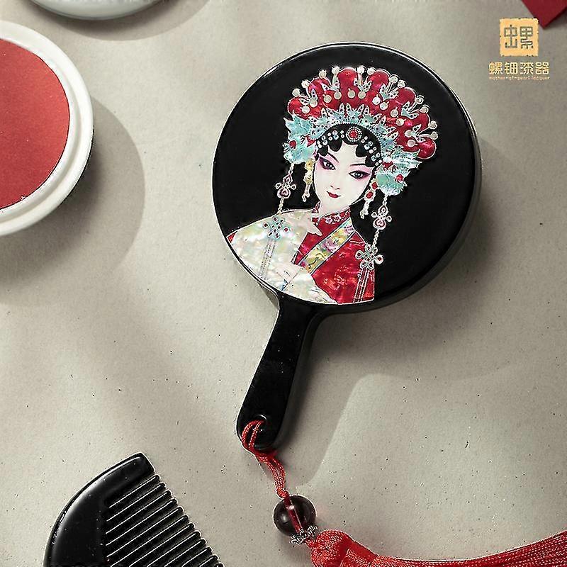 Handmade Lacquerware Lacquerware Wooden Handle Mirror Shell Carving Wooden Makeup Mirror Comb Set Chinese Retro Gift Portable Mirror