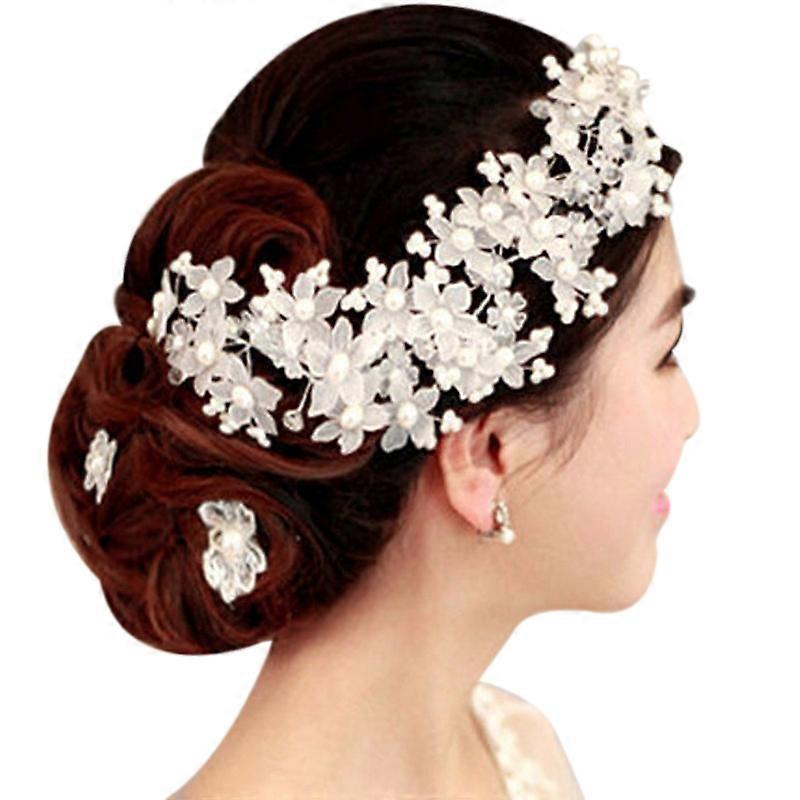Handmade Bridesmaid Wedding Head Dress White Beads Bridal Head