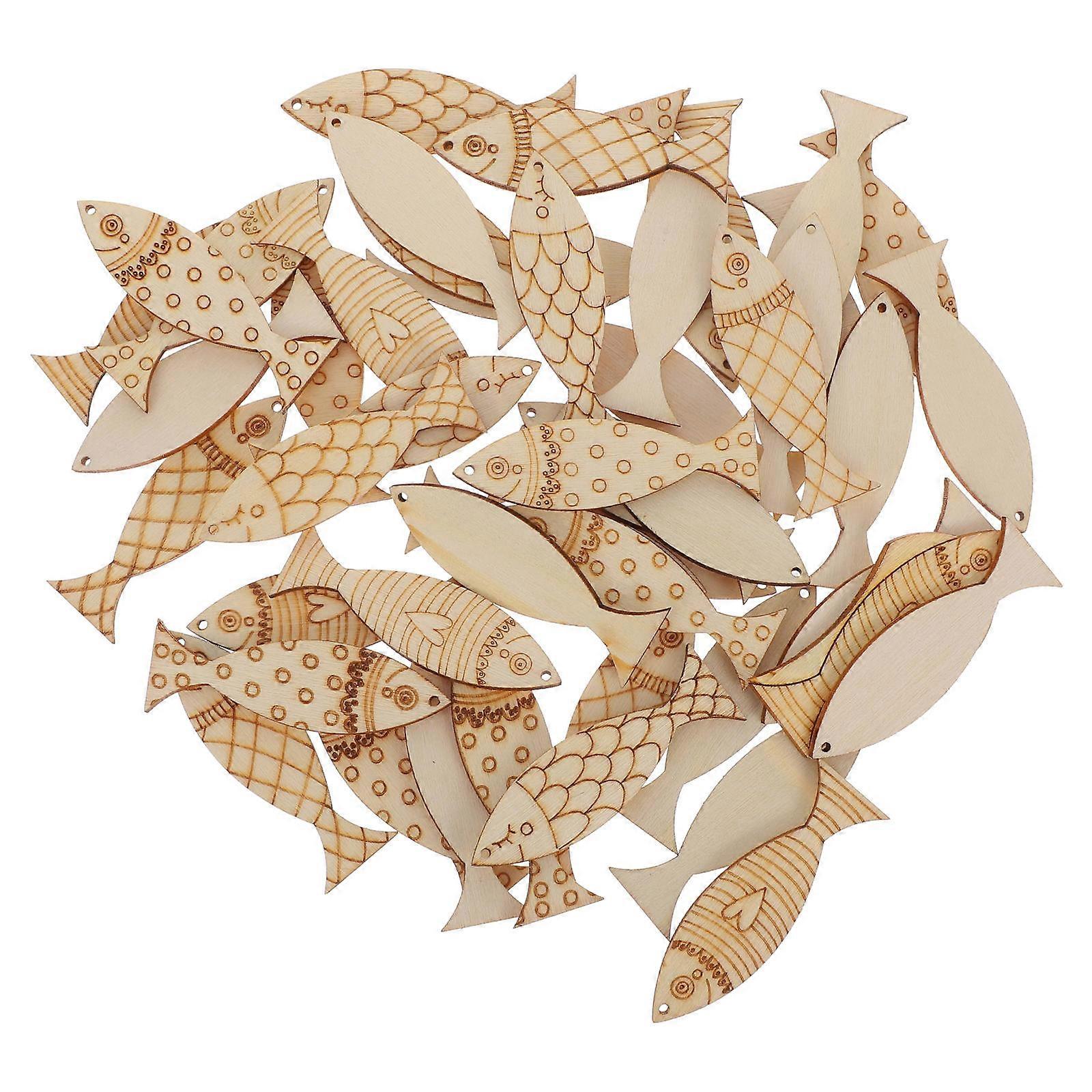 Fish Cutout Unfinished Wood Mediterranean Style Natural Poplar Wood Fish Ornaments for DIY Craft Projects Supplies 50Pack