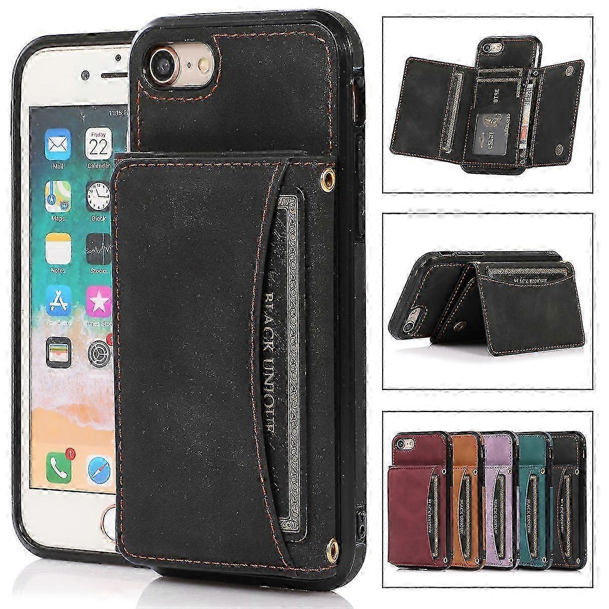 Iphone 7/iphone8 Wallet Case With Card Holder,slim Pu Leather Kickstand Card Slots Case For Apple Iphone 8 Black