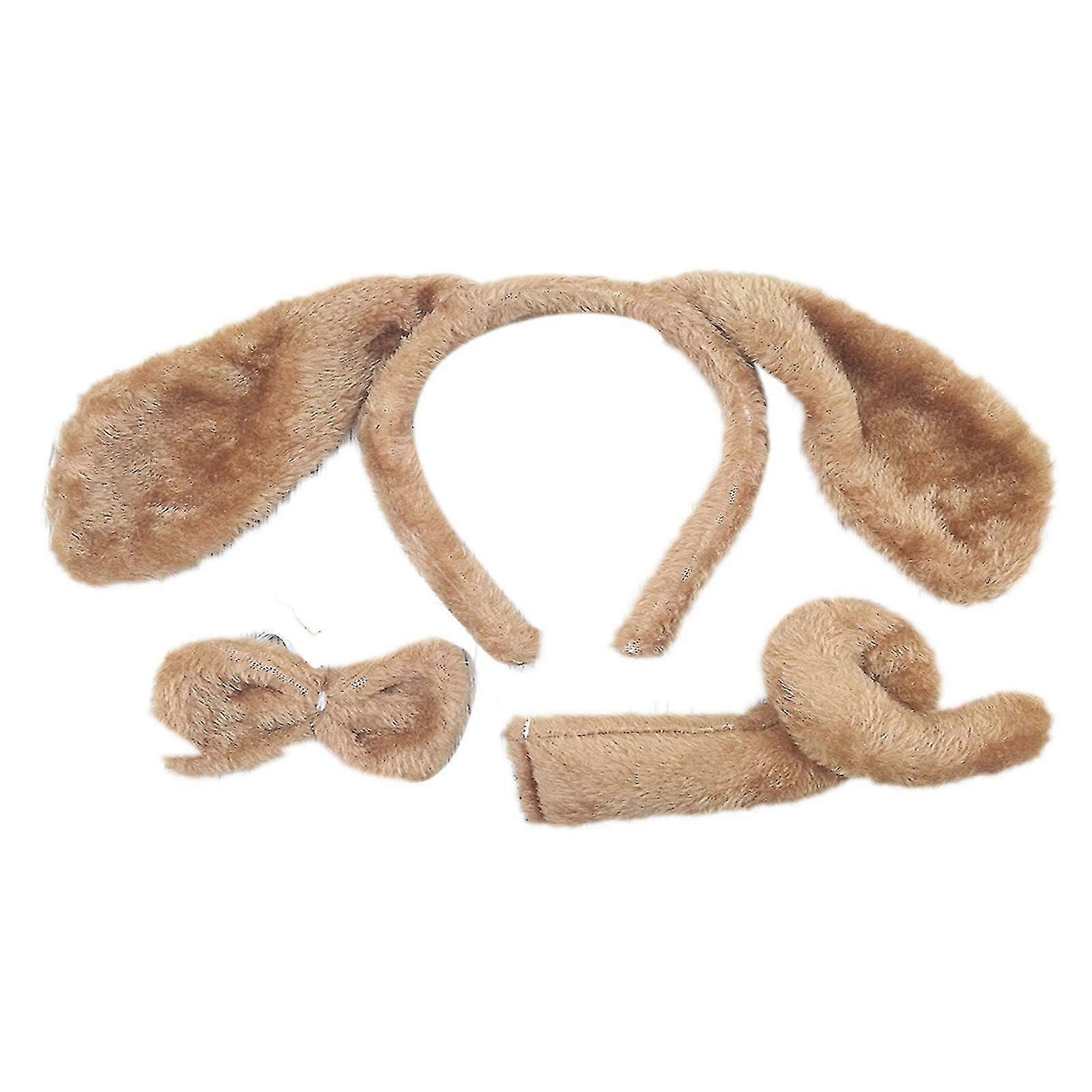 Long Ears Dog Headband + Bow + Tail Set Cosplay Animal Hair Hoop For Party
