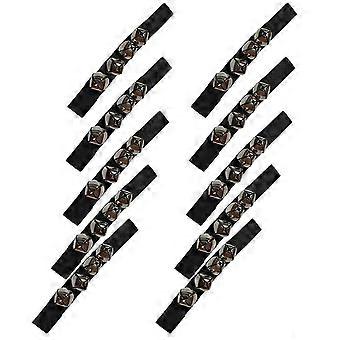 Sonic Clarity Meets Comfort: Our nylon straps caress your skin with a silky touch, while the metallic bells promise enduring shape and a jingle to invigorate any celebration with an auditory delight. Versatile & Vivacious: Seamlessly adjust and secure these vibrant jingle bells with our user-friendly adhesive design, perfect for adorning wrists and ankles alike Elevate your Christmas festivities, family reunions, and musical soirees with a sprinkle of rhythmic joy. Rhythmic Freedom: Don the Wrist Bells for a hands-free musical accessory or grasp them for a spirited shake These bells cater to your expression, whether you're gracing the dance floor or orchestrating the rhythm. A splash of festive color: Wristbells are not just a feast for the ears; Their radiant hues are eye-catching, sparking visual excitement and enhancing the celebratory atmosphere of any event they host. color: Black Material: Polyester fiber+metal size: 21.5x2.5x2.5cm Package Contents: 10 x hand bell Only the above package content, other products are not included. Note: Light reflection and different displays may cause the color of the item in the picture a little different from the real thing. The measurement allowed error is +/- 1-3cm.