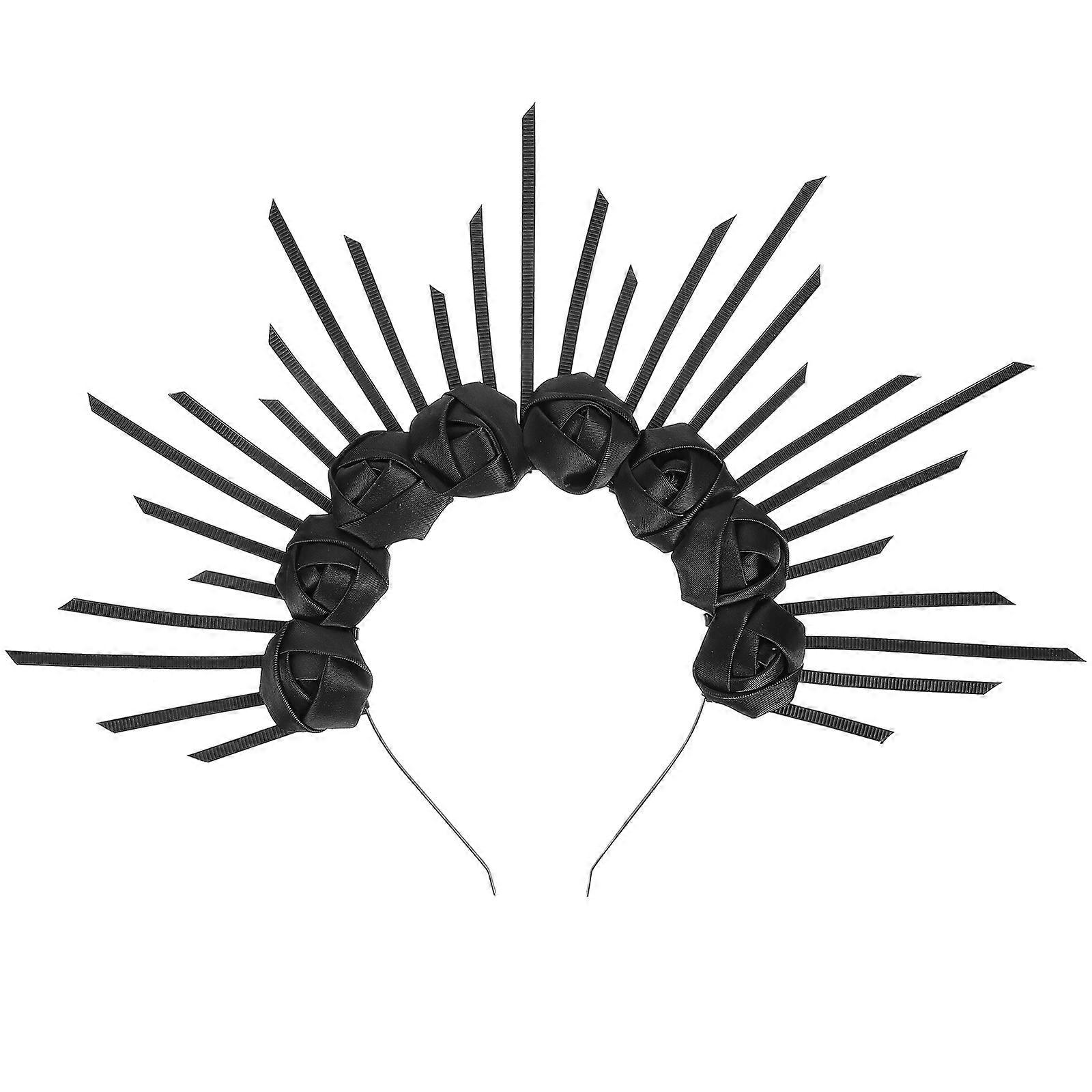 trendy goddess headpiece is versatile enough to match any hairstyle, face shape, or outfit and perfect for most formal occasions, such as weddings, parties, banquets, etc. Also as wonderful present for your lover on birthdays or other special occasions you want to remember. Features - Color: Black -Material:Plastic, resin, cloth - Size: 35.00X26.00X0.90cm/13.76X10.22X0.35in - Unique and exaggerated design, goddess headpiece is decorated with spike and cloth , perfect for cosplay costume. - This crown adds shine with a burst of sun to a costume or outfit, fit for wedding, pageant, proms, parties, costume, stage productions, and more. - Our floral headband for is perfect accessory to complete your Halloween look, prom look, cosplay look and more. - Made of safe plastic, resin and cloth materials, floral headband is lightweight and easy to wear, won't cause any discomfort. - flower crown is easy to match with different outfits, adding a touch of glamour to your style. Package list: 1 x flower crown