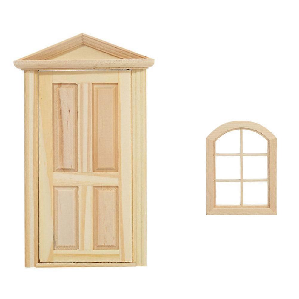 Dollhouse Doors Miniature Furniture Miniature Design Diy Door Miniature 6-Pane Window Beige 2Pcs