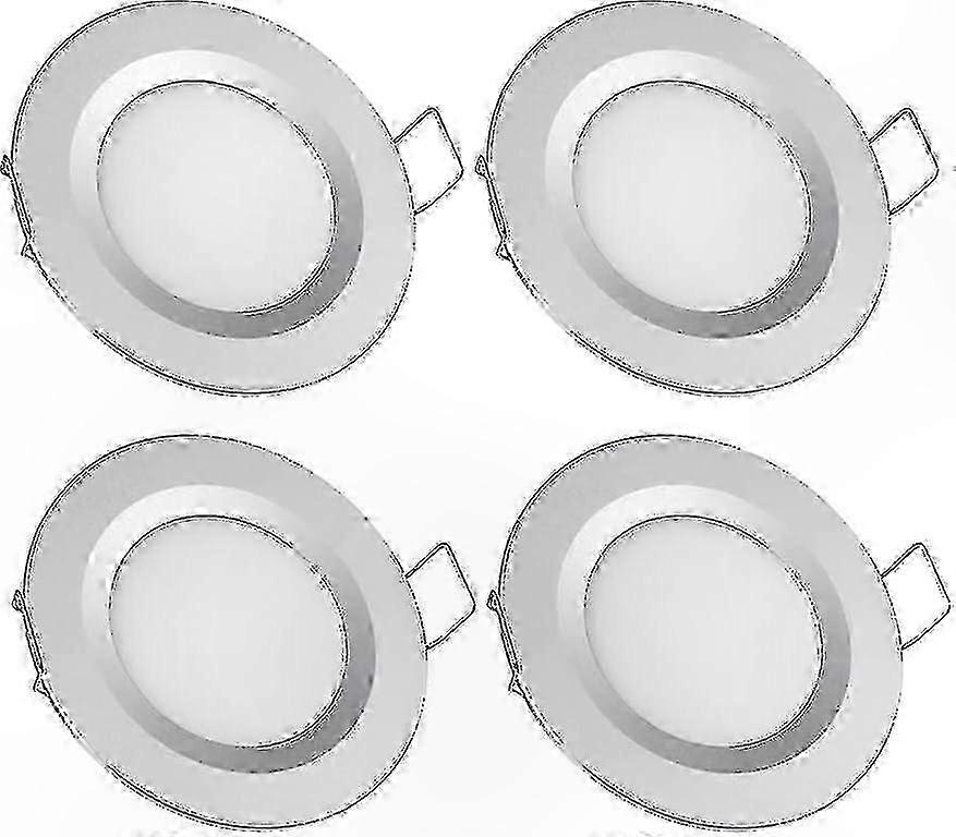 3 watts 12 volts 4 pieces. High quality finish - durable - elegant look. Lifespan 50,000 hours. Suitable for motorhome, caravan, boat, yacht, kitchen, bathroom, bedroom. Installation dimensions: Mounting hole: min. 58mm, max. 65mm. Diameter 70mm, thickness 12mm. All-aluminum and ultra-thin design: Made of full aluminum, conducive to heat dissipation of the LED chip board. 12mm thickness, lightweight and compact body fits tight places. Shock and vibration resistant. Electronic data: DC 12V, 3W, 215 Lumen. Color temperature 3200K (warm white), Beam angle: 120 degrees, dimmable with PWM dimmer. Note: Suitable for motorhome, caravan, boat, kitchen, bathroom, bedroom with DC power supply 12V. Requires DC12V power supply for operation. Home power is AC110V-230V. Do not connect to AC 12V power supply.