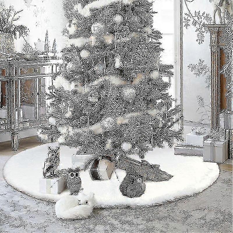 White Christmas Tree Skirt Plush Faux Fur Carpet Xmas Floor Mat Ornaments