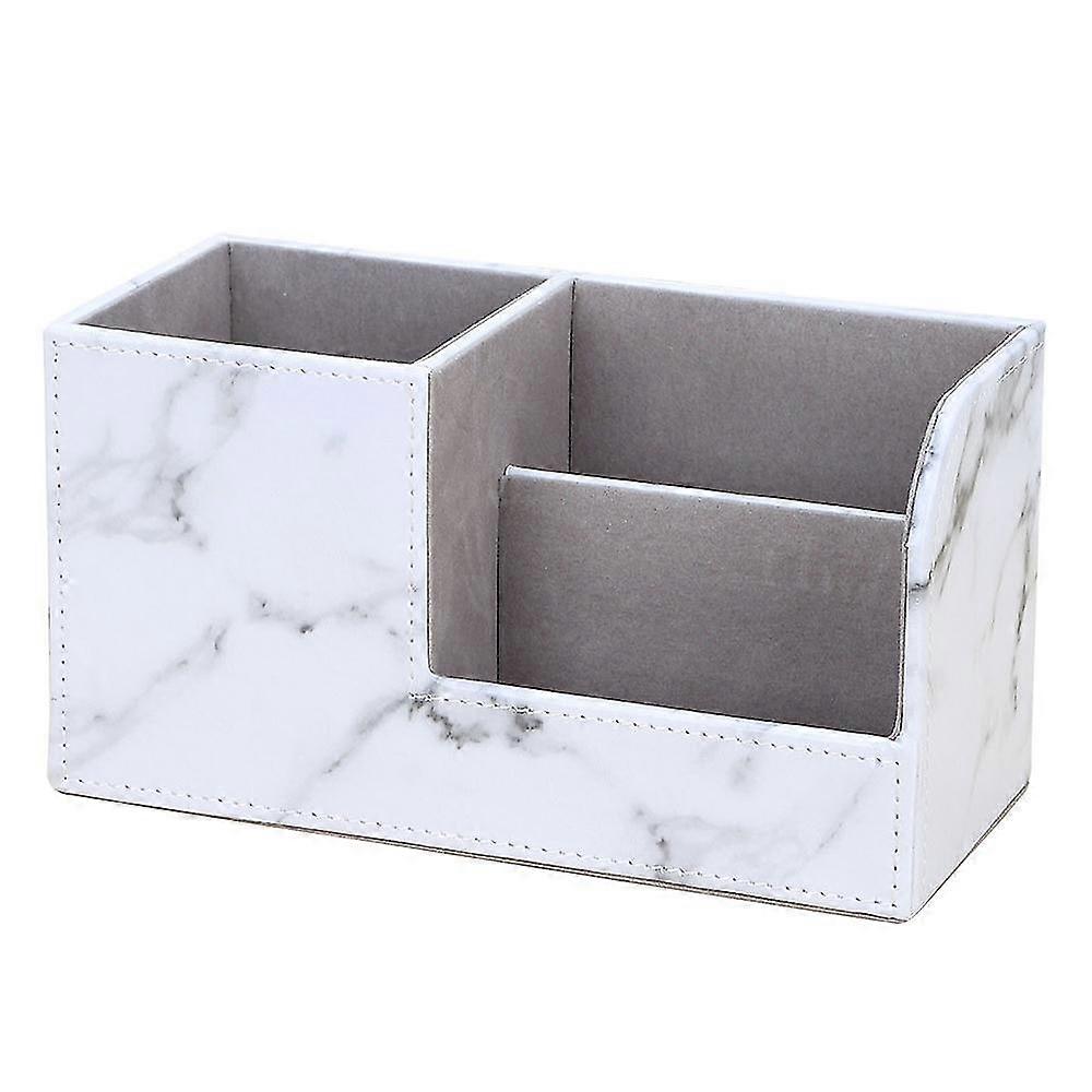 White One Piece Multifunction Desk Leather Finish Storage Box, Lightweight Luxury Marble Square Pen Holder, Desk Swing Storage Box