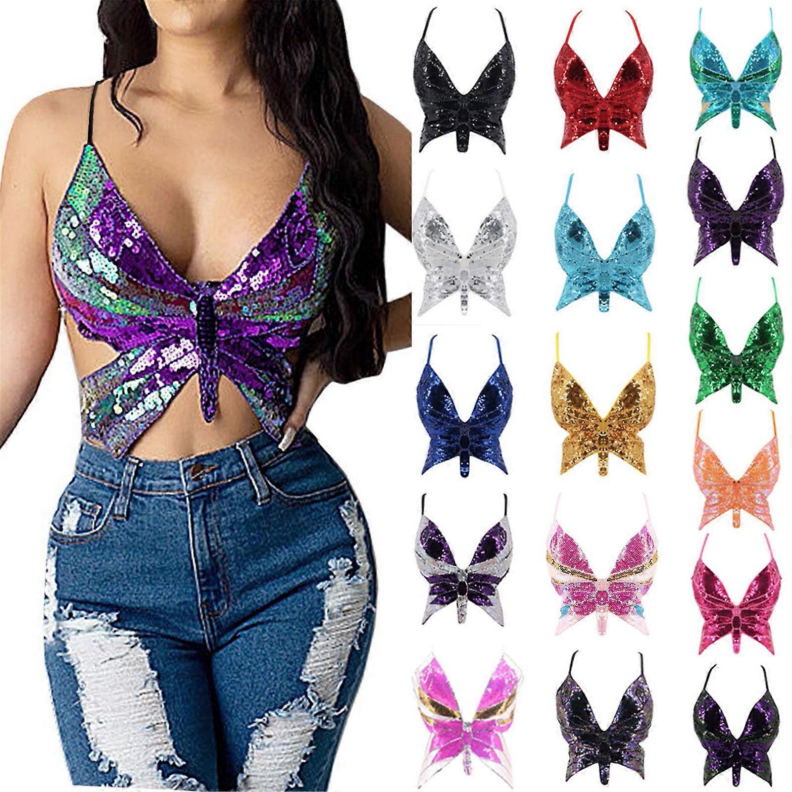 Atasan Crop Estetika Atasan Payet Glitter Wanita Bra Perban Mujer Rompi Tari Perut Pakaian Kostum Tank Seksi Baju Vintage