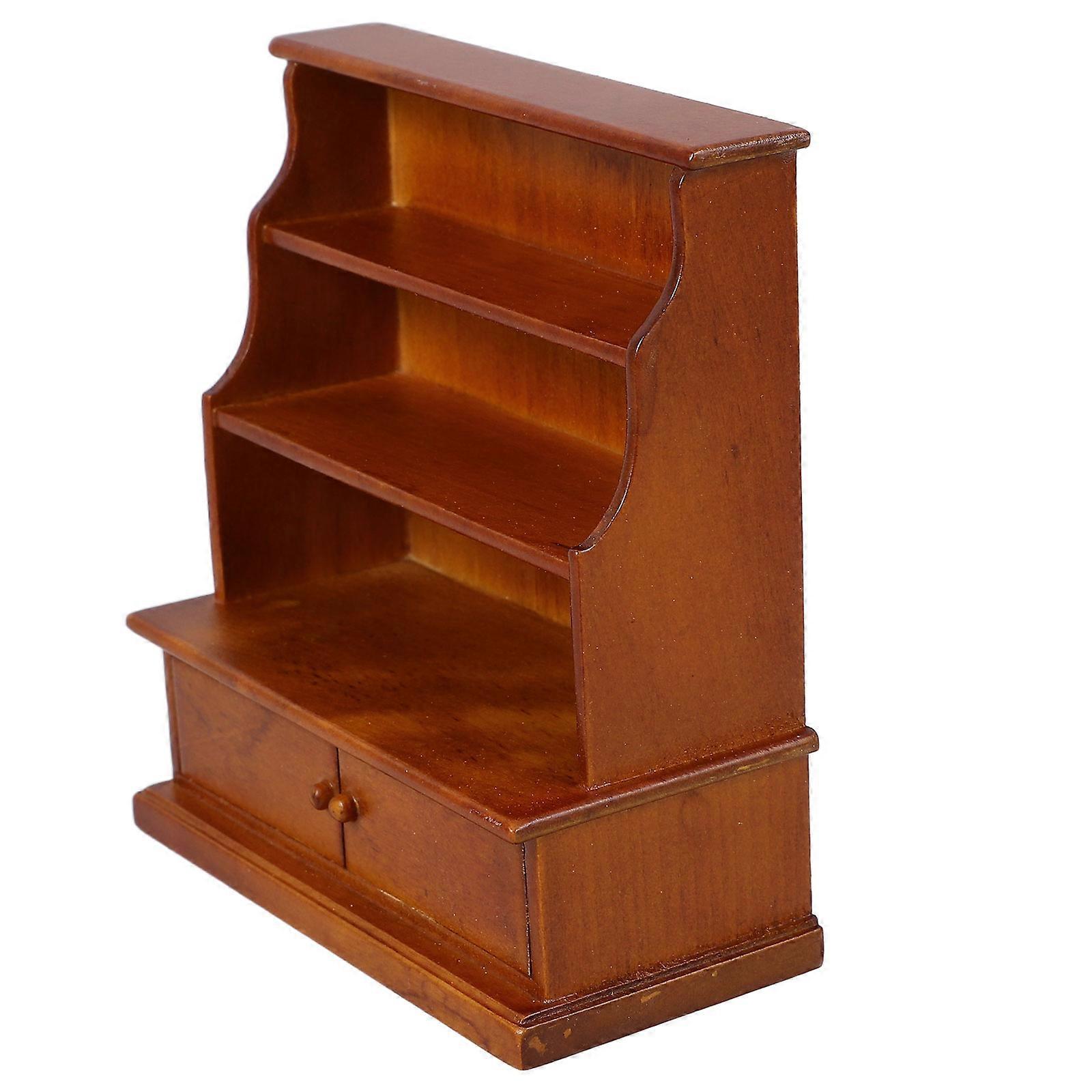 Miniature Bookshelf Dollhouse Furniture, Walnut Display Bookcase with Vivid Detail for Doll House Bedroom or Living Room Decor, Mini Wood Storage