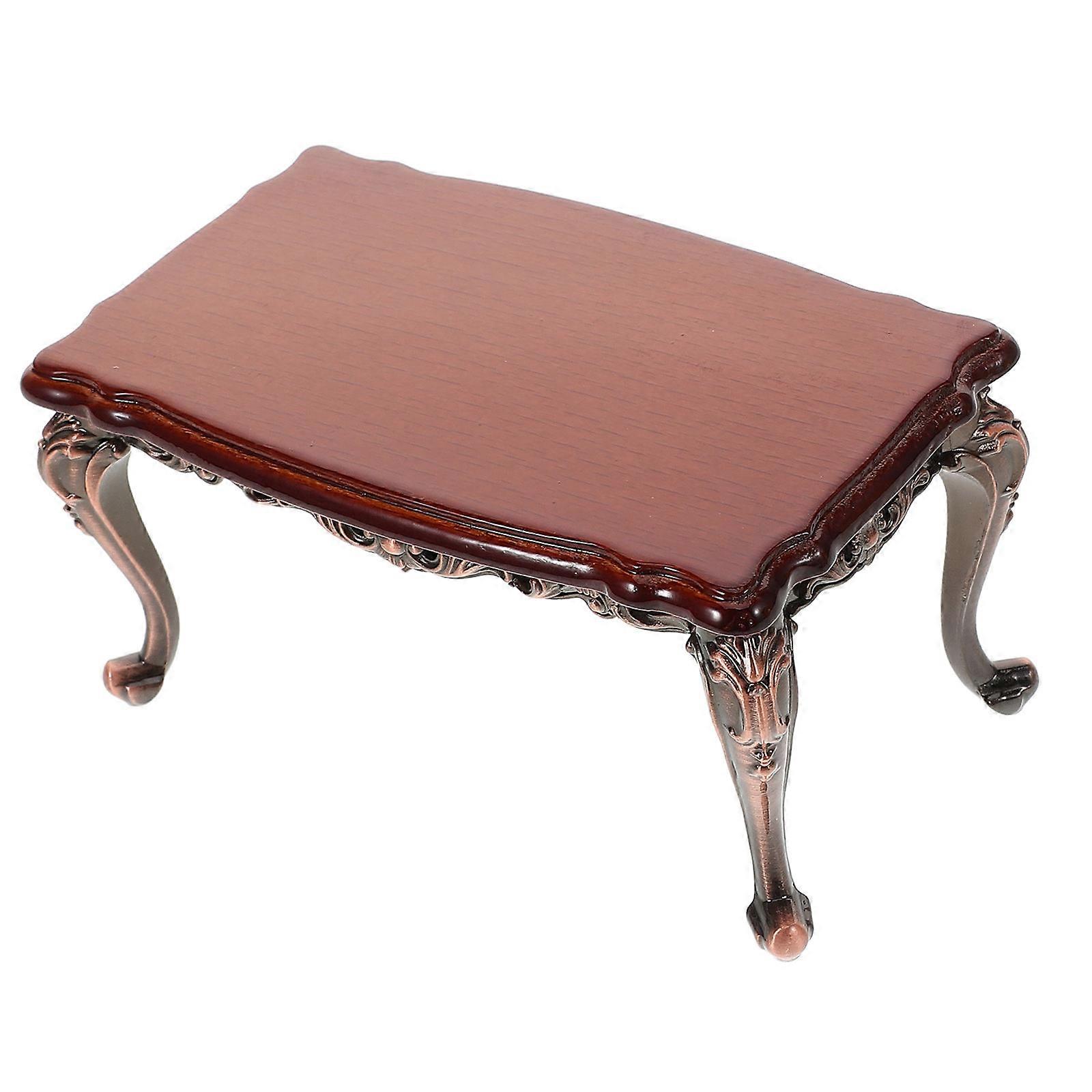 Wood Dollhouse Furniture Mini Table for Playhouse Use 3Pcs Brown Metal Design