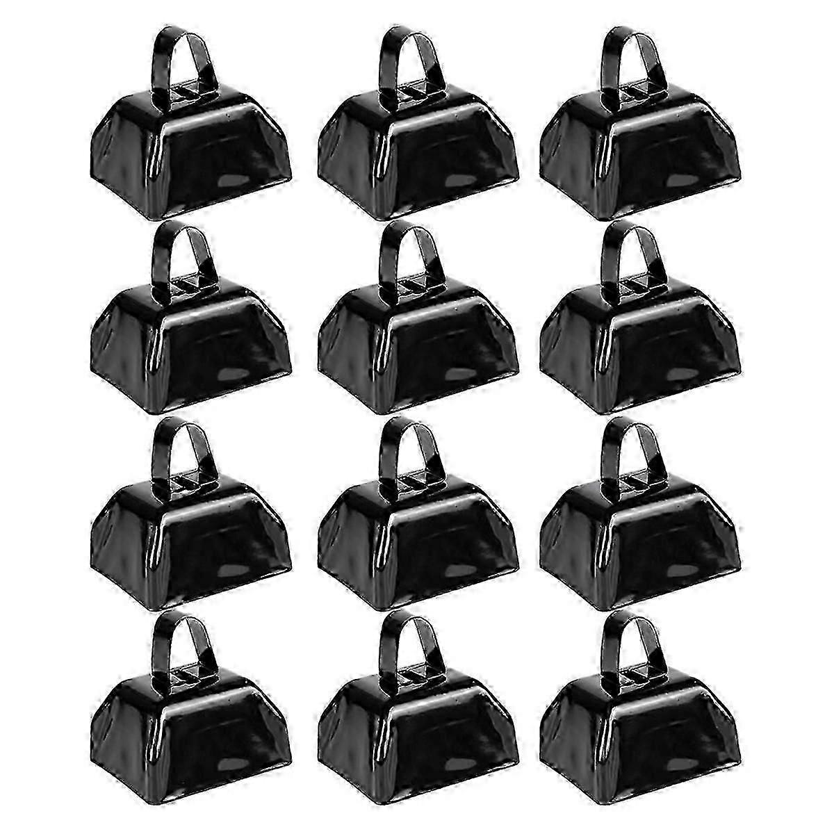 Cow Bells Noise Makers Cheering Bell: 12 Pcs Metal Cowbells with Handle for Sporting Events - Small Loud Bell Black