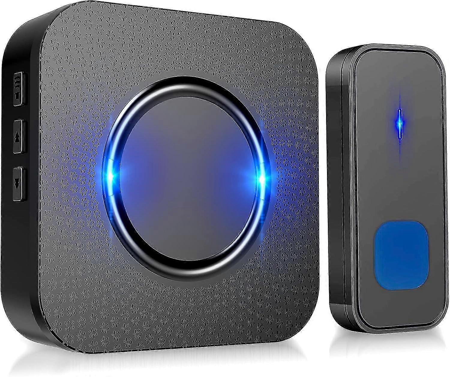 Wireless Doorbells, 55 Melodies 5-level Volume And, Ip55 Waterproof Wireless Chime, Chime Kit With 300 Meters, Led Flash, 1 Plug-in Receiver - Black