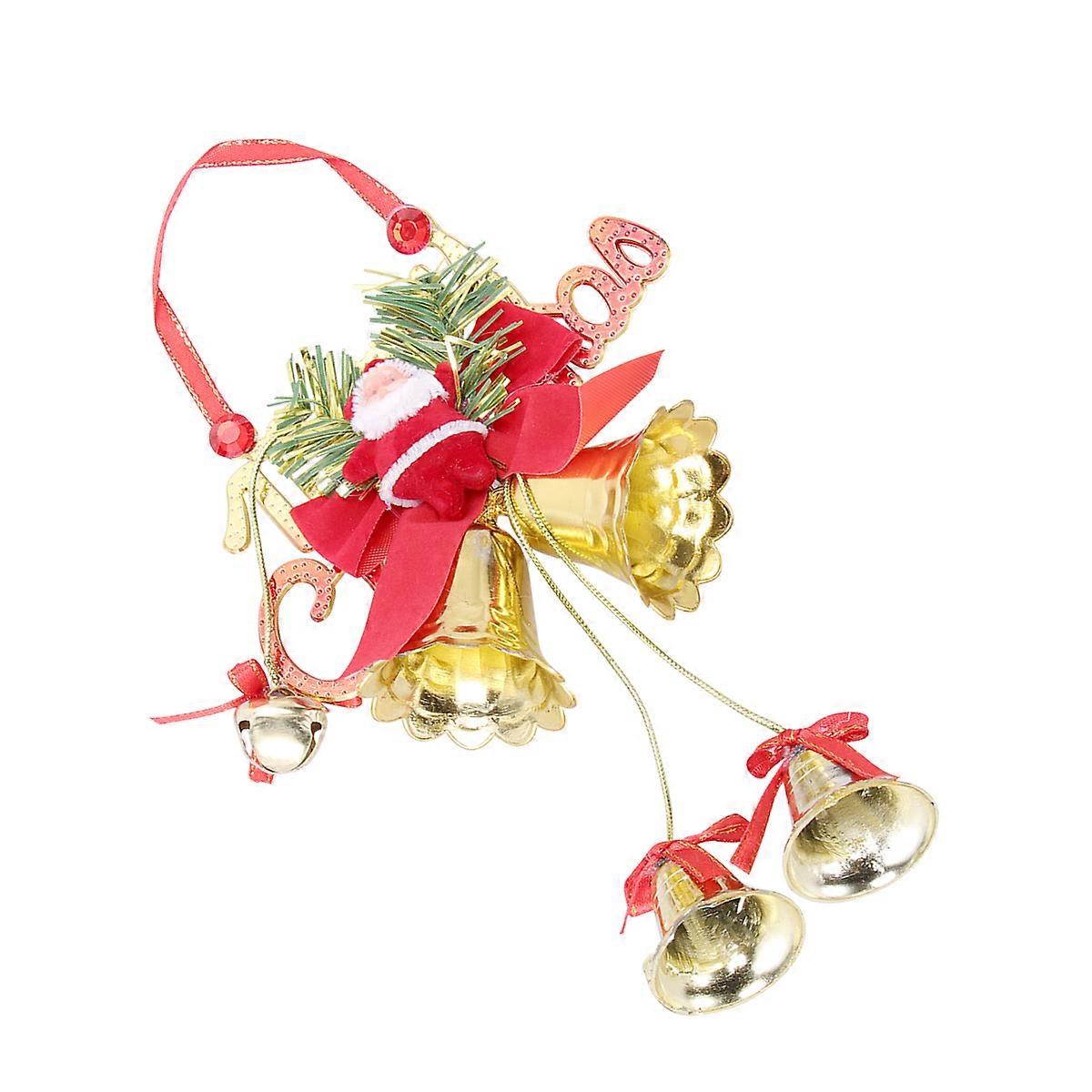 Christmas Bells Ornaments Door Hangers Pendants Wall Plastic Xmas Tree Hanging Decoration Golden 20cm 1Pack