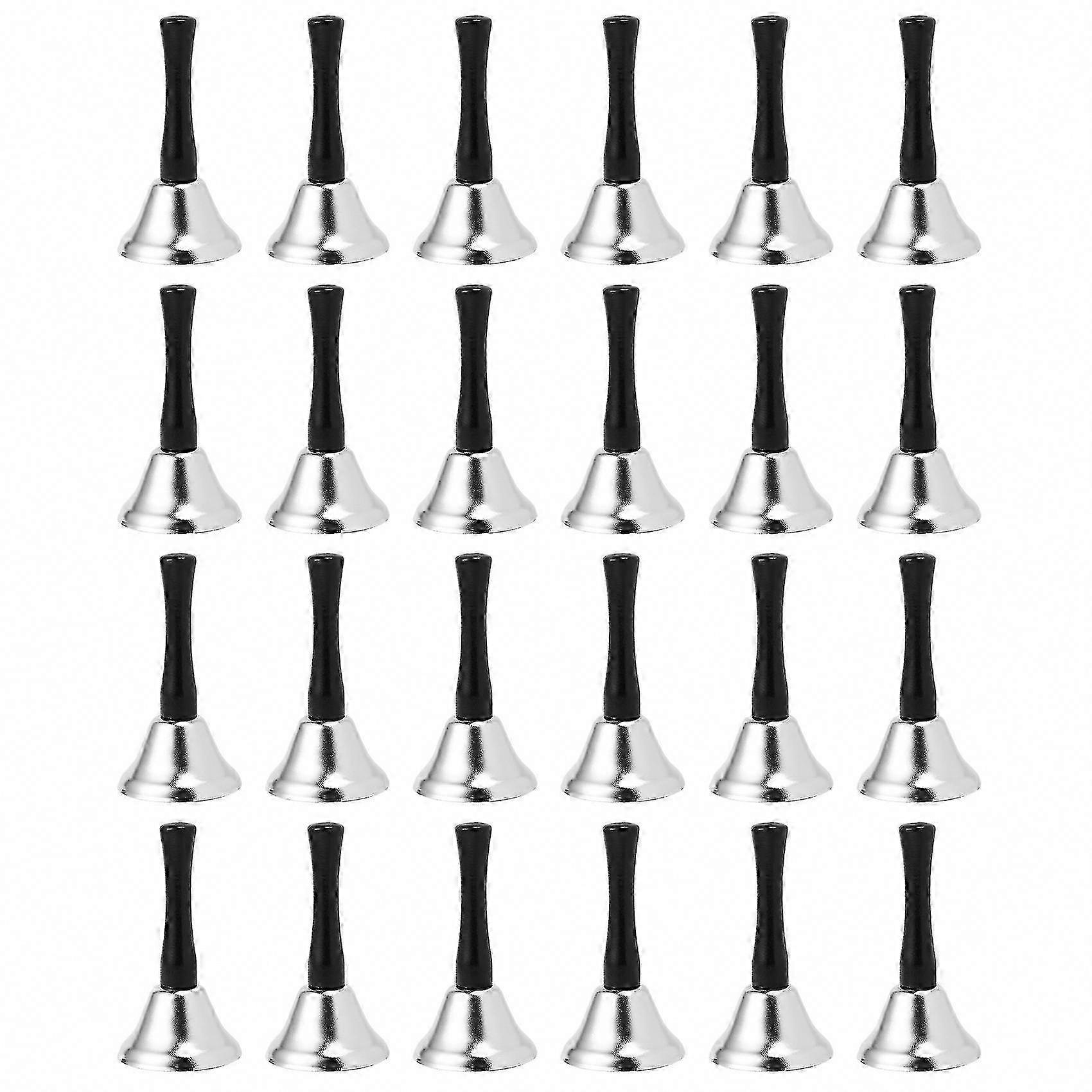 24-Piece Silver Steel Hand Bells with Black Wooden Handle - Diatonic Percussion Instrument (Nickel White) for Music Service