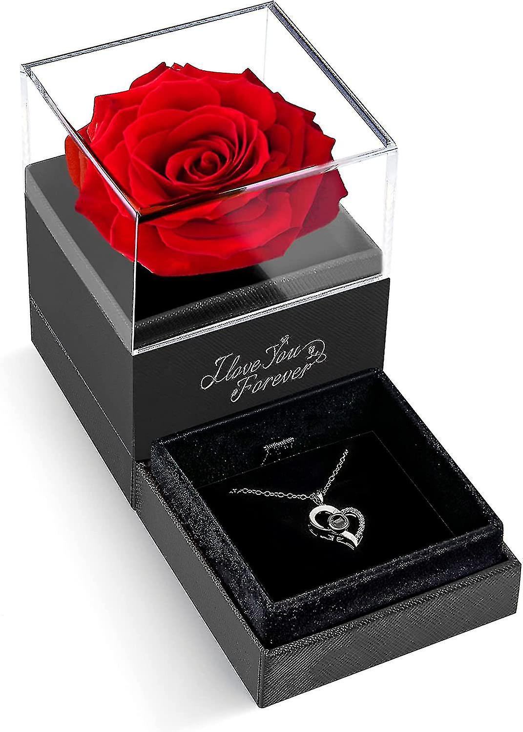 I Love You Necklace With Red Rose - Romantic Gifts For Her Wife Girlfriend On Anniversary Valentine's Day Birthday Gifts For Women Mom