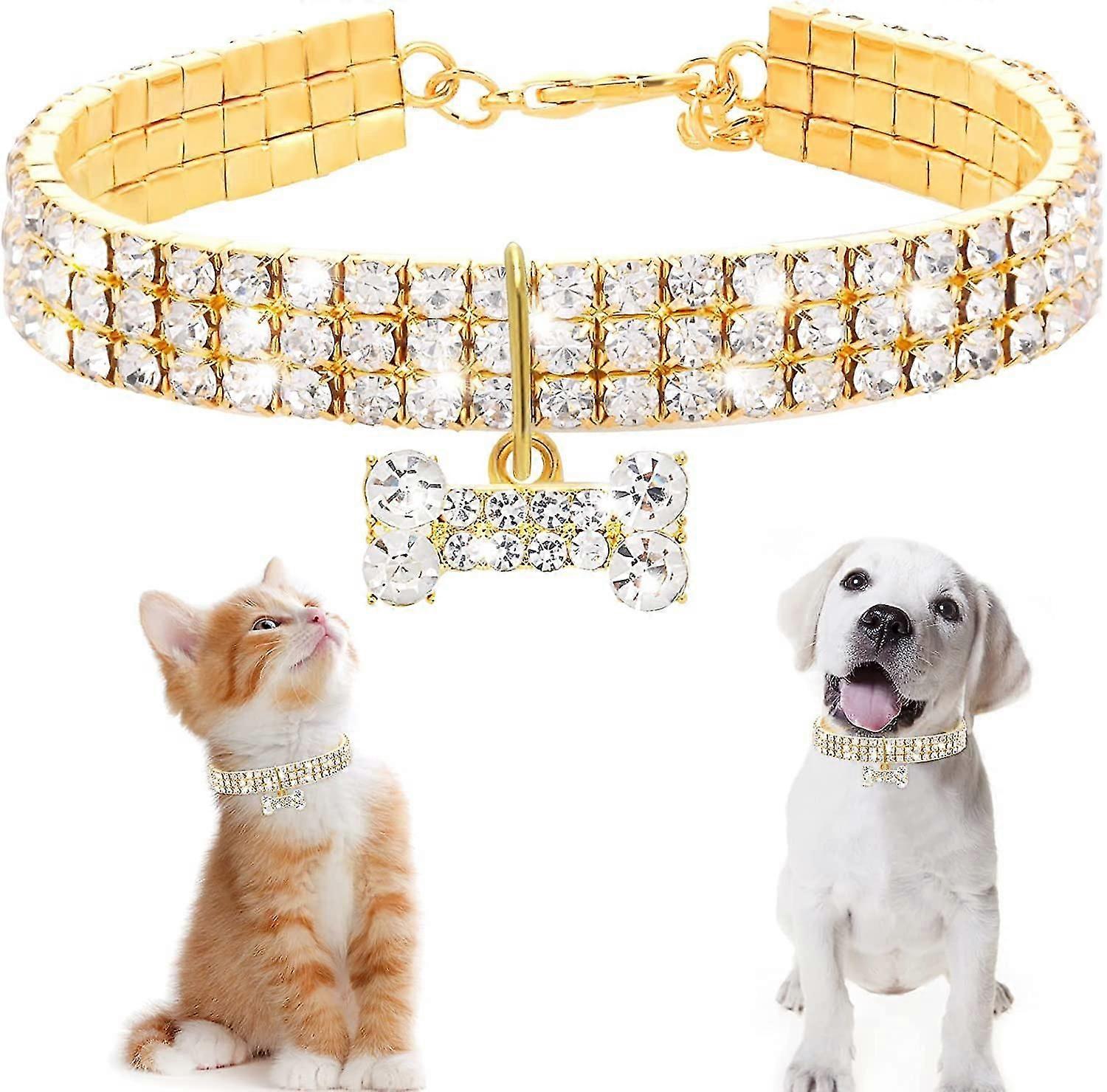 Rhinestones Cat Collars, Adjustable Bling Cat Kitten Collar Pet Collar Necklace Crystal Diamond Elastic Collar with Pendant for Cat Puppy Kitten (Gold