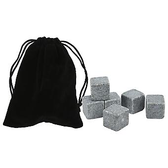 Whiskey Stones 2cm Granite Whiskey Ice Tart Stone Flannel Bag Set Gift for Whiskey Gin Wine Vodka with Flannel Bag 6