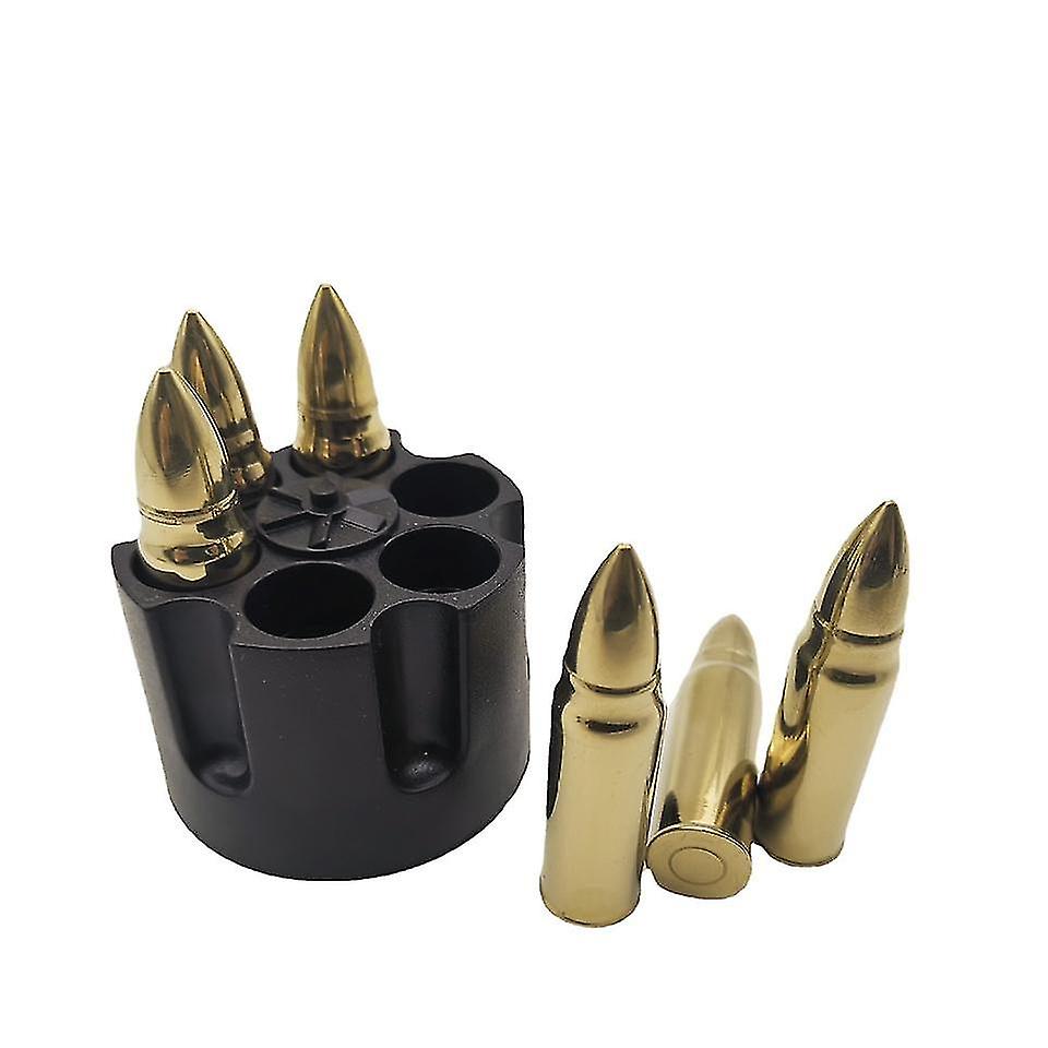 Golden Whiskey Chillers Stones In Black Ammo Can - Whiskey Rocks - Stainless Steel Bullet Shaped Ice Cubes, Whiskey Or Scotch Rocks