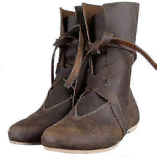 Men's Medieval Boots Renaissance Cosplay Shoes Viking Leather Boots Pirate Tied Shoes