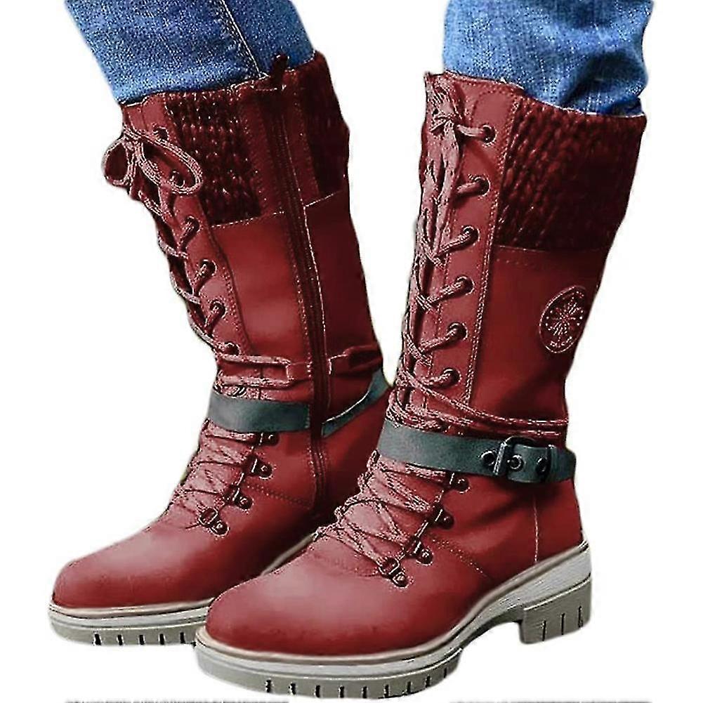 Women Ankle Boots Winter Warm Long Boots For Autumn Riding Boots Western Boots Leather Boots Snow Boots Red 35