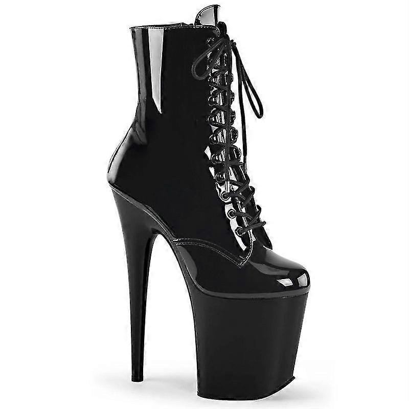 Women Ankle Boots Short Bootie Platform Stiletto High Heel Round Toe Shoes Lace-up Patent 7.5 Inch
