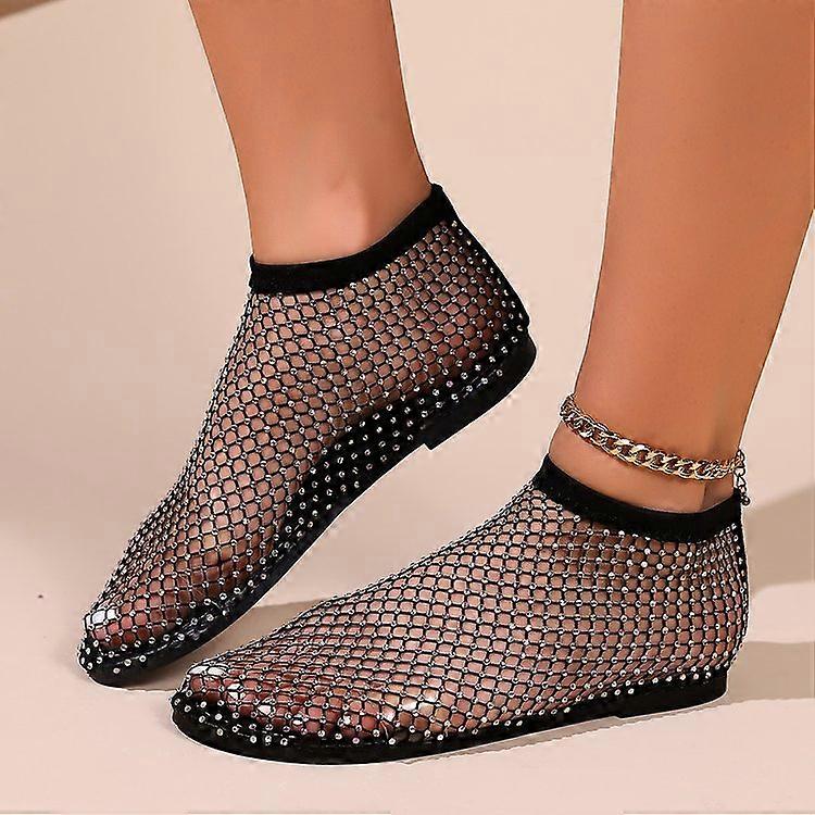 Bling Shoes,Fish Mouth Sandals Stretch Fishnet Stockings Hollow Short, Glitter Shoes for Women - Sparkly Mesh Flat Sandals for Women