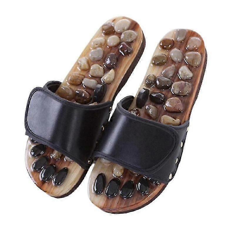 Walk Stone Shoes Feet Massage Slippers Foot Reflexology Acupuncture Therapy Massager Acupuncture Cobblestone Massager 100% brand new & high quality. Color: Red, Black (the color of the pebbles on each pair of shoes will be different. Don't mind if you place an order) Size: 35-36, 37-38, 39-40, 41-42, 43-44 Our size is Chinese size, you can choose a larger size than usual. thank you. Notes: Massage shoes are rooted in the principles of foot massage and Chinese medicine. All natural earth and rocks are carefully selected in different parts of the world. Stimulating the nerve endings for 10 to 20 minutes a day can enhance blood flow and balance a person's energy level. Put pressure on the feet to release the blocked energy, and you can perform mini acupressure while walking or even standing. The package includes: 1 pair* massage slippers